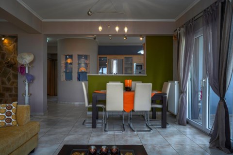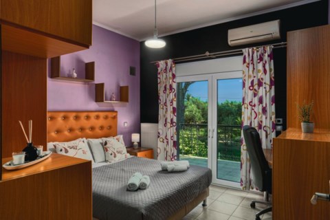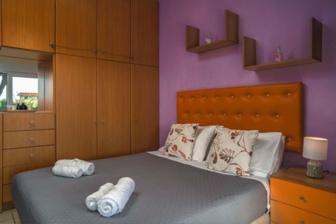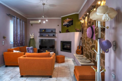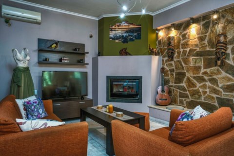Filios Villa is a ground level house in Gaitani area, large enough to host up to 8 guests. It features 3 bedrooms; 2 with 1 queen bed each, and a third bedroom with 2 single beds. There is also a sofa-double bed in one of house's 2 living rooms! Each bedroom is fully furnished, equipped with all amenities and with airconditioning for comfort during hot summer days.